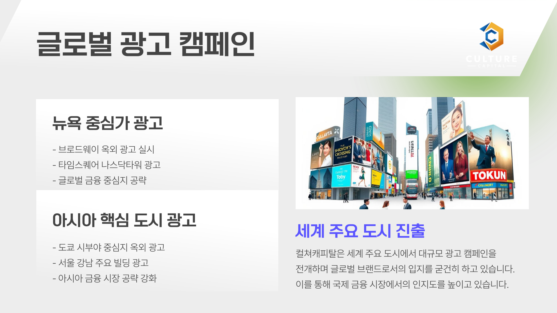 컬처캐피탈의 광고 히스토리