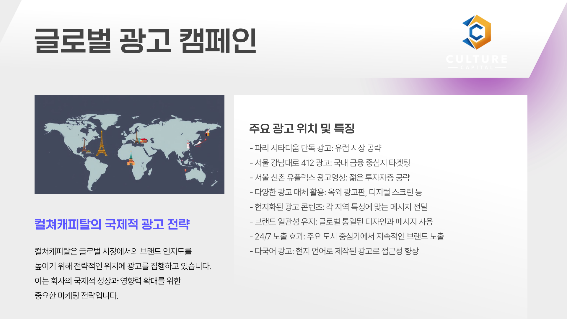 1. 광고 전략: 세계 주요 도심을 거점으로 한 글로벌 노출